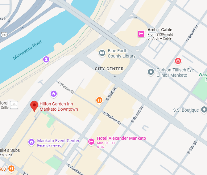All hotels are centrally located to the Mankato Event Center with the furthest hotel being .5 miles away.